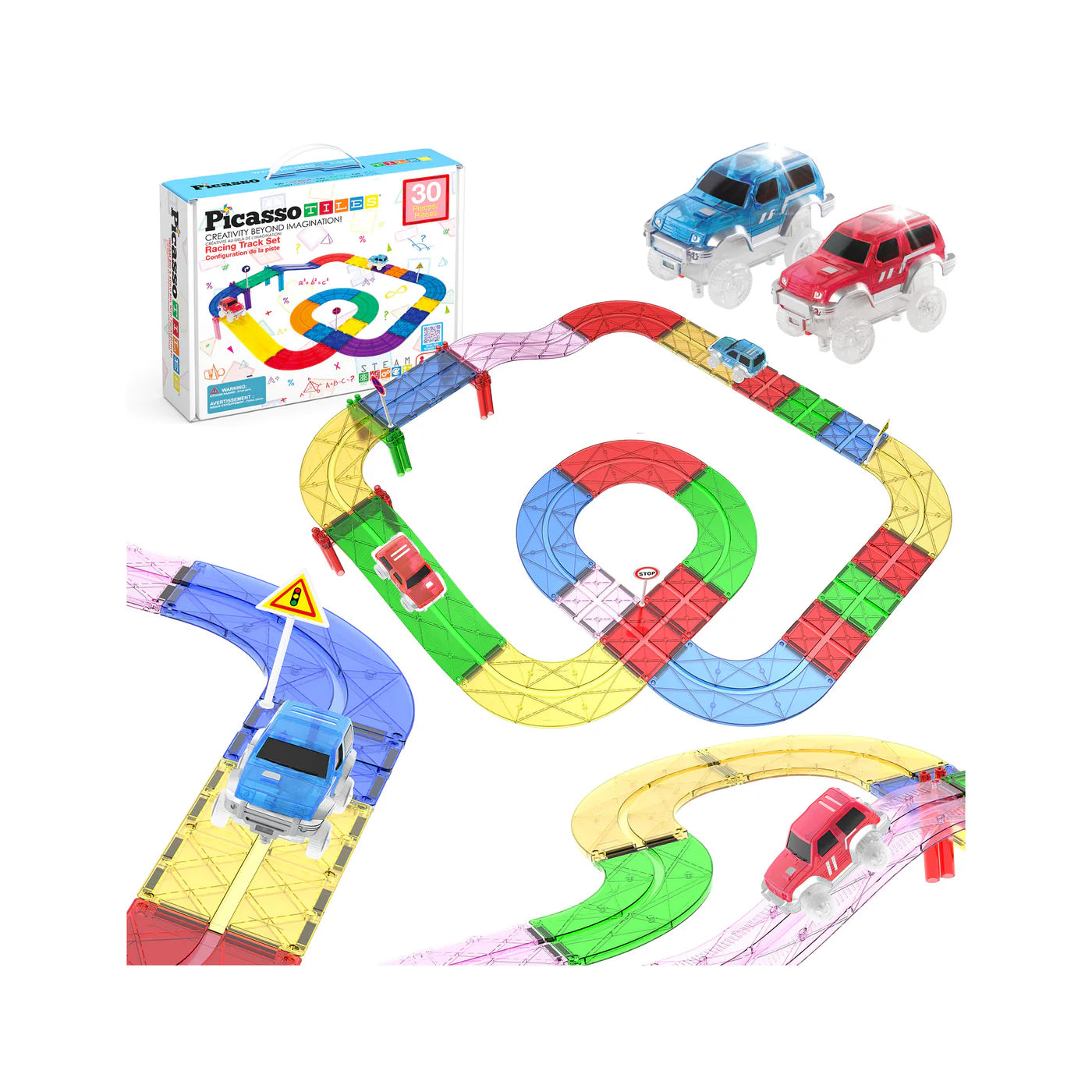 Picasso Tiles - Magnetic Race Track Building Blocks (30pcs)
