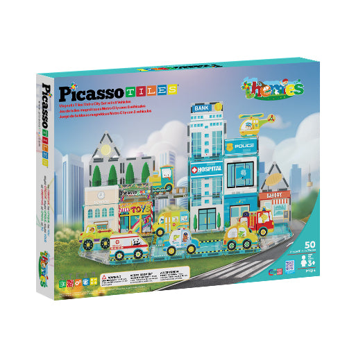 Featuring magnet tile vehicle character action figures and vibrant city-themed magnetic building block tiles, it will inspire budding architects.